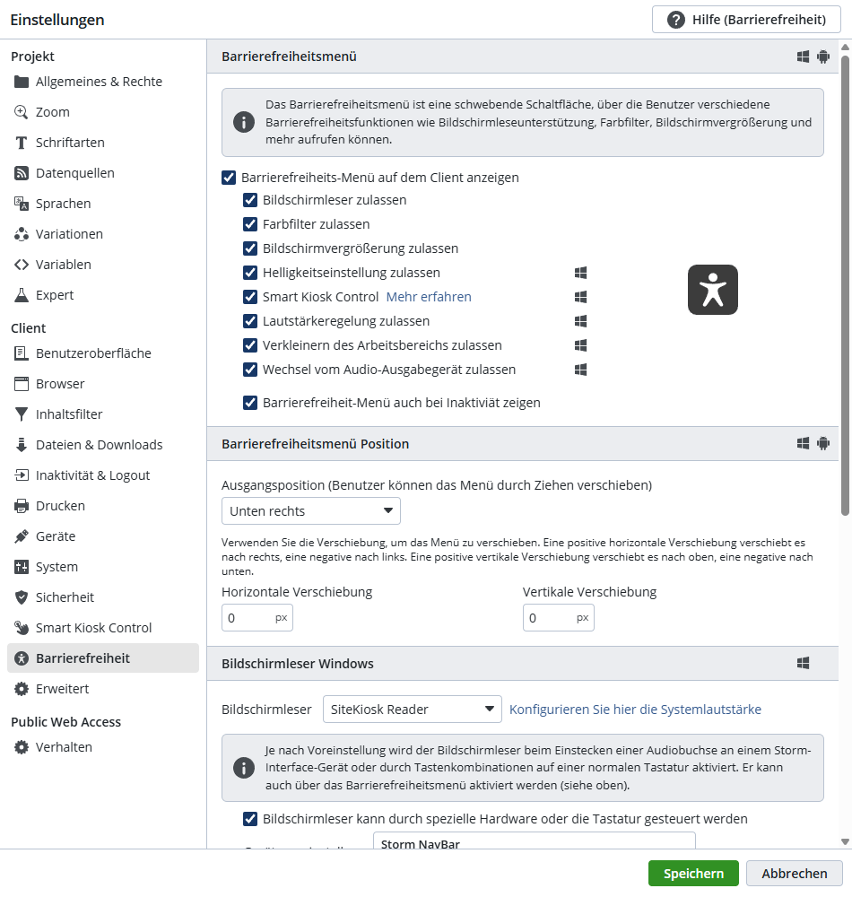 Barrierefreiheit in SiteKiosk Online konfigurieren